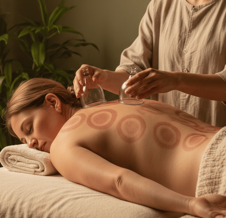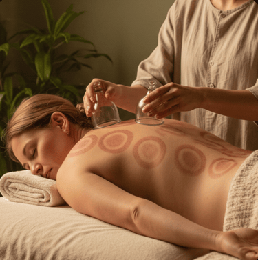 Cupping therapy involves the application of suction cups to targeted areas to promote blood flow, reduce muscle tightness, and support tissue recovery.