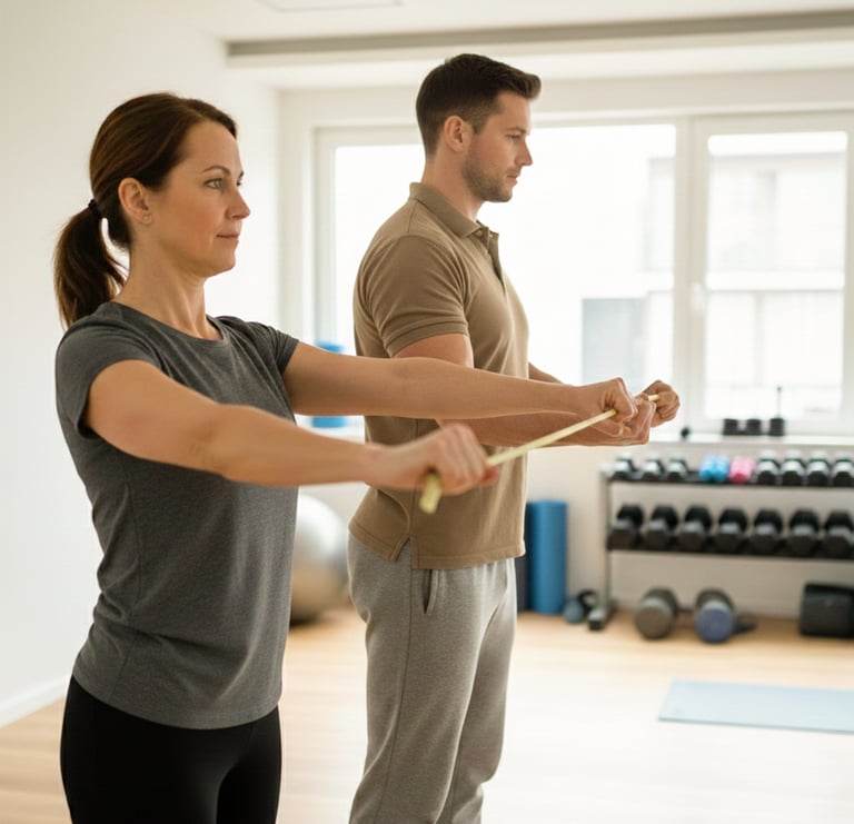 Rehabilitation exercises are targeted movements designed to restore strength, mobility, and function after injury or physical strain. They support recovery, prevent further injury, and help you regain confidence in your daily activities.